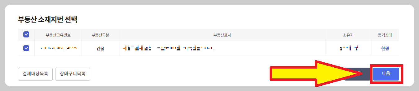 그리고 말소사항포함을 선택하고 '다음' 버튼을 누릅니다.