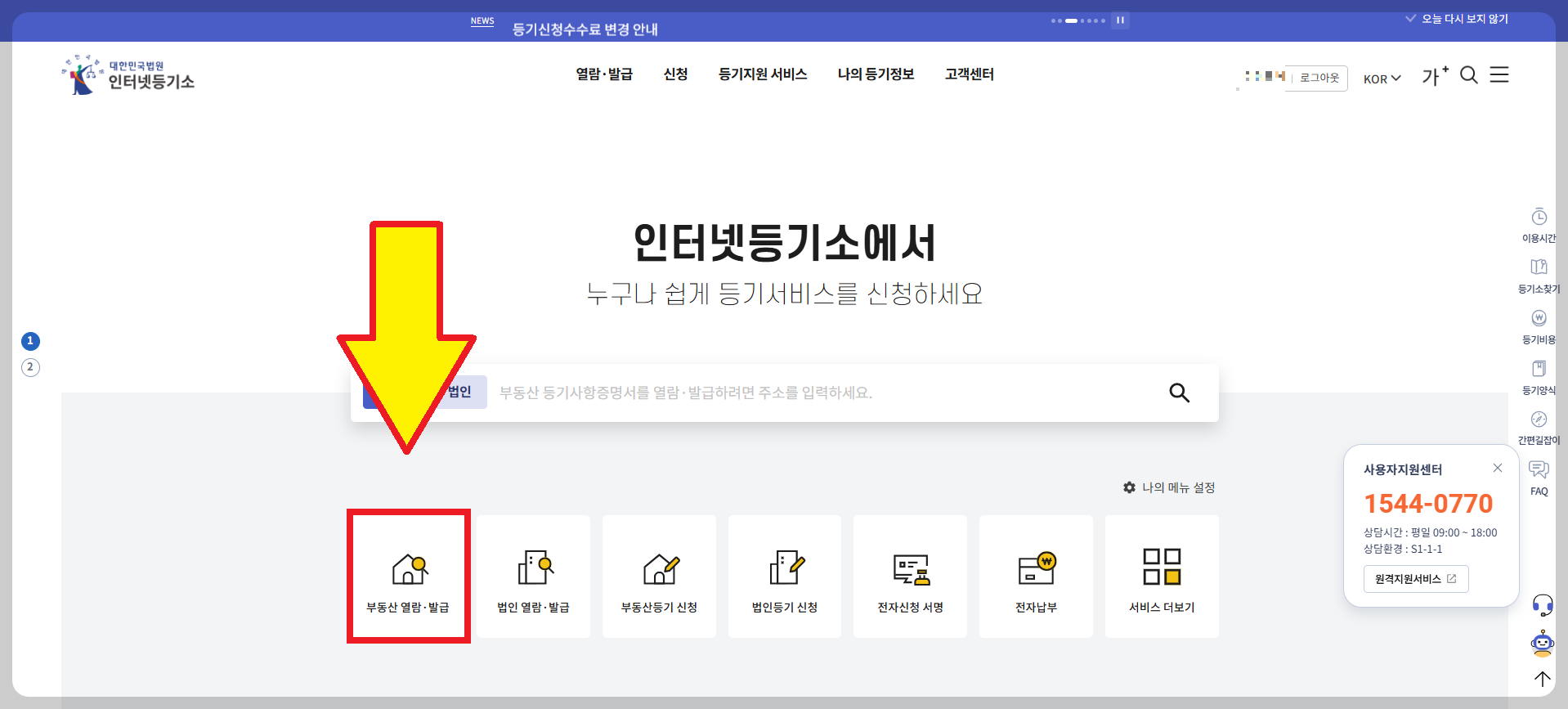 등기사항전부증명서(등기부등본) 발급 전에, 법원 전자소송 사이트(https://ecfs.scourt.go.kr/psp/index.on) 사용자등록부터 합니다.