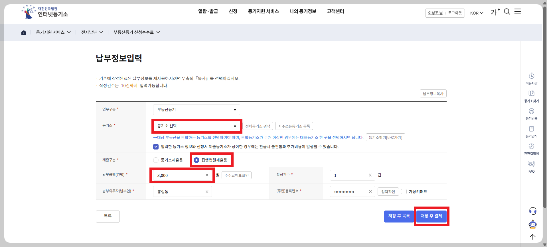 넷째, '저장 후 결제' 버튼을 누르고 결제까지 합니다.