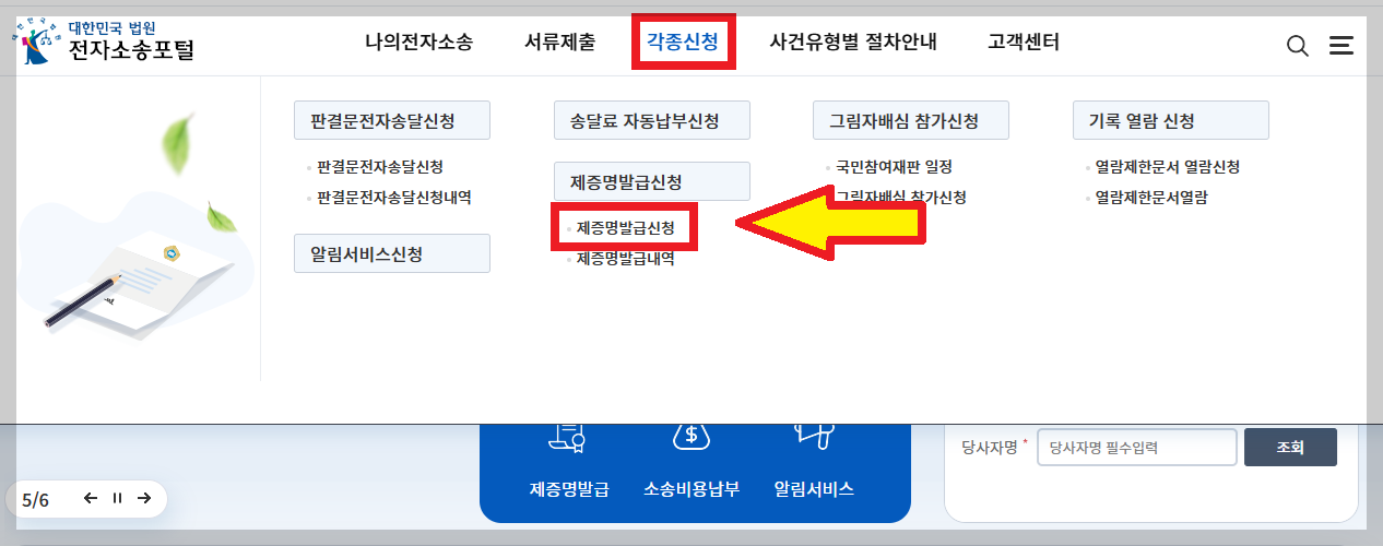 그리고 그 아래 '제증명발급신청'이 보이실거에요.