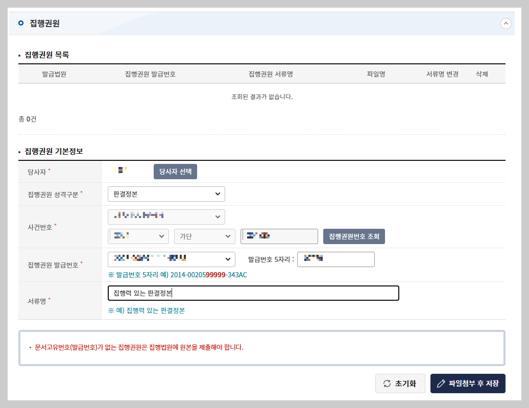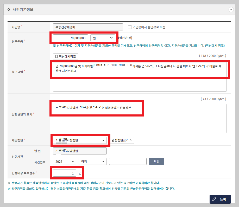 그걸보고 집행권원 기본정보에 입력하시면 됩니다.